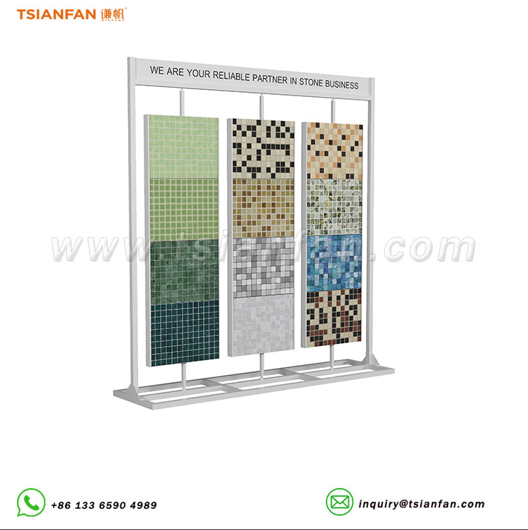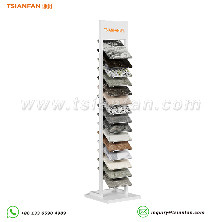 翻页式岩板瓷砖展架,岩板展架,瓷砖展架,文化石展架,人造石展示架,人造石落地展示架,马赛克瓷砖旋转架 |